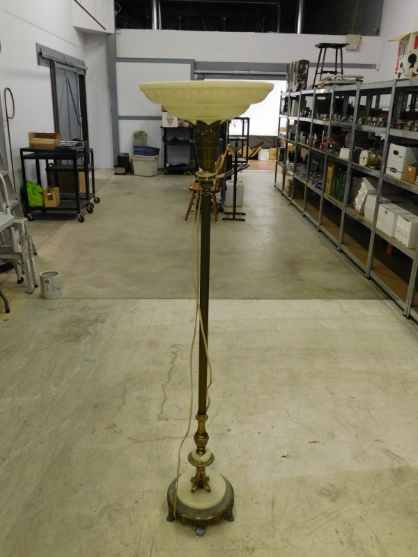 Vintage Torchere Floor Lamp Brass Nice Glass Shade Marble Base Arts